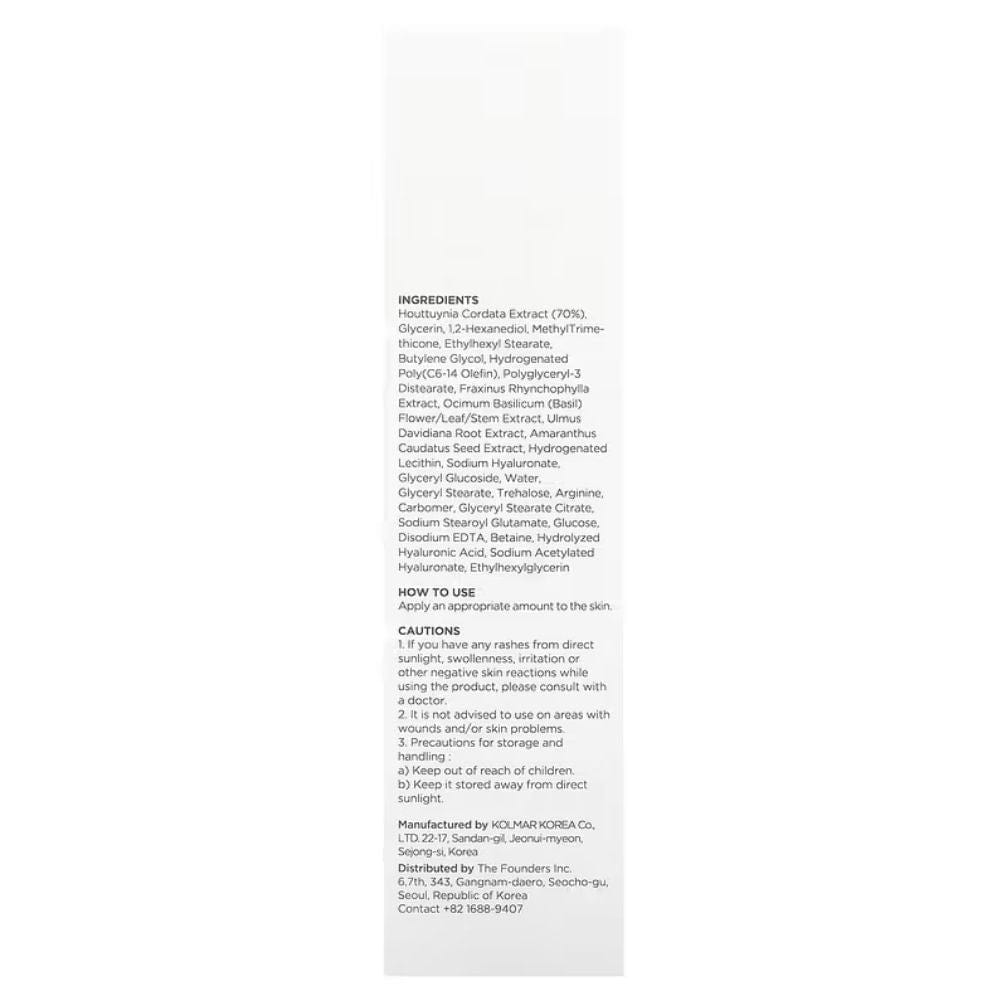 Eau, Glycérine,1,2-Hexanediol, Butylene Glycol, Houttuynia Cordata Extract, Glyceryl Stearate, Arginine, Carbomer, Ethylhexylglycerin, Sodium Stearoyl Glutamate, Glucose, Ulmus Davidiana Root Extract, Amaranthus Caudatus Seed Extract, Lécithine hydrogénée, Tocophérol, Acide hyaluronique hydrolysé, Hyaluronate de sodium acétylé, Stéarate d'éthylhexyle, Tréhalose, Extrait de Laminaria Japonica, Extrait de feuille d'Eclipta Prostrata, Hyaluronate de sodium cutané, Bêta-Glucane, Glutamate de sodium, Glutamate de sodium, Glutamate de sodium, Glutamate de sodium, Glutamate de sodium Glucan, Betaine, Ficus Carica (Fig) Fruit Extract, Glyceryl Glucoside, Glyceryl Stearate Citrate, Polyglyceryl-3 Distearate, Squalane, Fructooligosaccharides, Hydrogenated Poly (C6-14 Olefin), Butyrospermum Parkii (Beurre de karité), Centella Asiatica Extract, Methylpropanediol, Fraxinus Rhynchophylla Extract, Ceramide Np, Cetearyl Glucoside, Ocimum Basilicum Flower/Leaf/Stem Extract, Disodium EDTA, Sodium Hyaluronate, Methyl Trimethicone, Caprylic/Capric Triglyceride, Cetearyl Alcohol, Dipropylene Glycol.