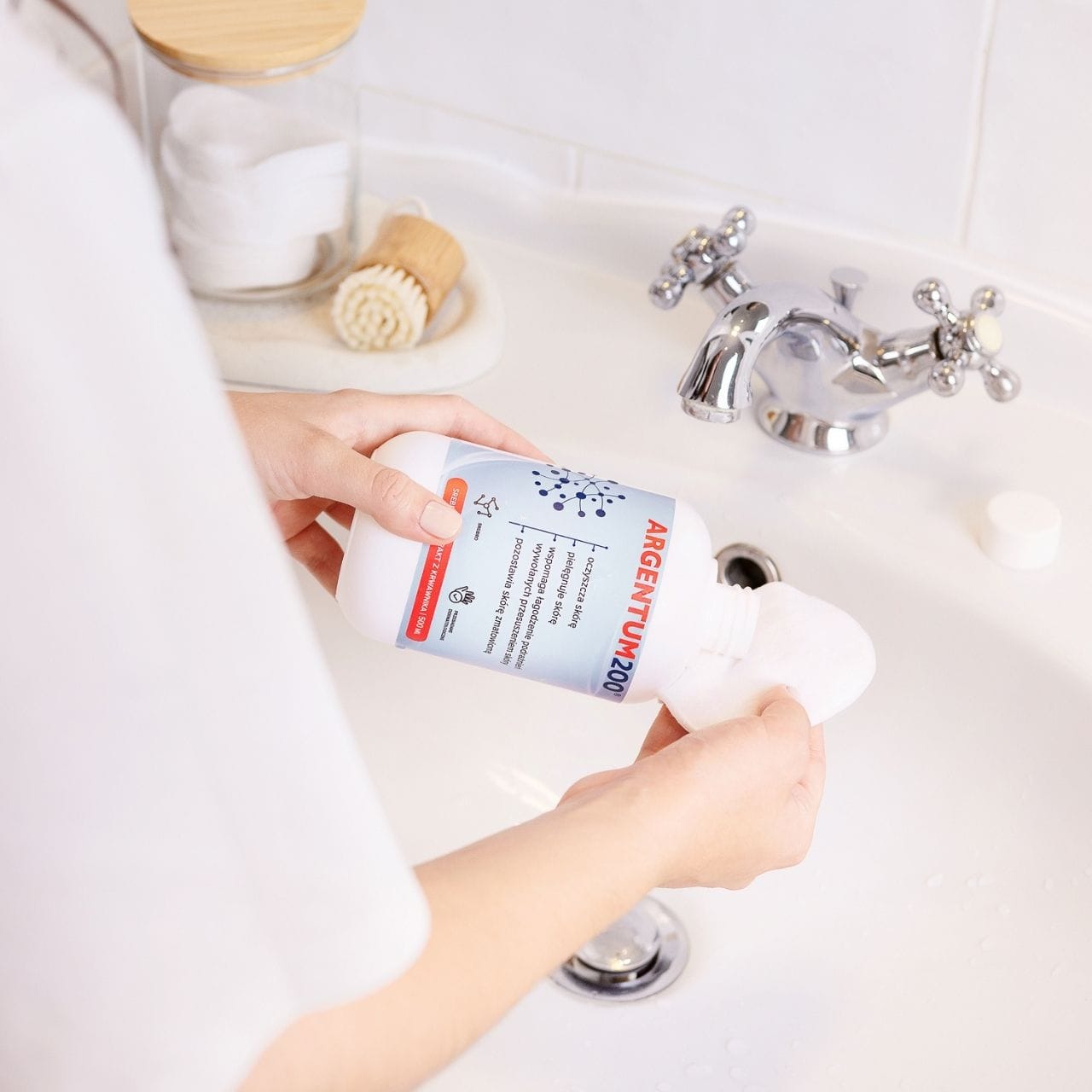 Tonique spécialisé Aura Herbals Argentum200 ® Argent avec citrate d'argent et extrait d'achillée millefeuille pour les peaux à problèmes. Nettoie efficacement, aide à réduire les imperfections et matifie la peau présentant un excès de sébum. Formule légère à base d'eau, sans SLS, parabènes ni alcool. Efficacité confirmée par les tests SKINLAB - spray pratique.