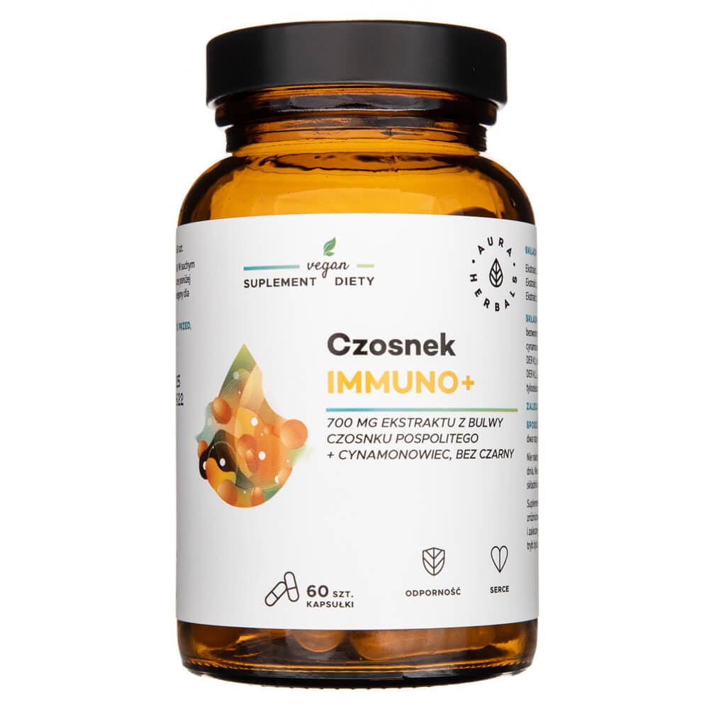 Le complément alimentaire Garlic Immuno apporte un soutien naturel à l'immunité et au fonctionnement normal du cœur. Il contient 700 mg d'extrait d'ail commun dans une portion journalière et des extraits naturels d'ail, Cannelle de Ceylan et de sureau.