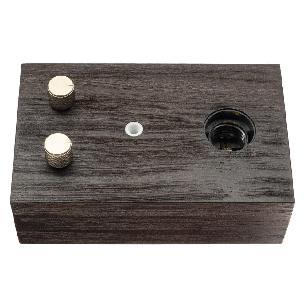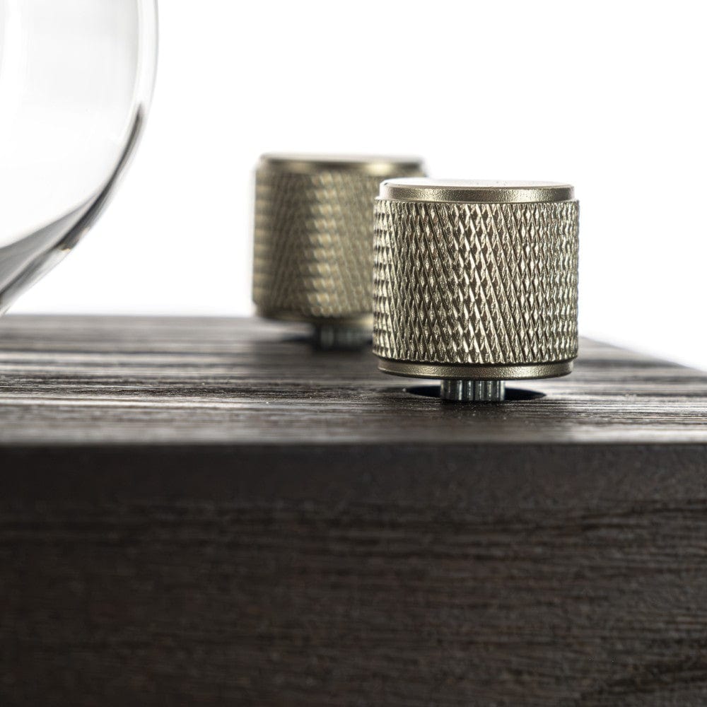 - Mäntypuinen pohja lasipullo, , polttimo ja metalliset nupit – kestävyys ja eleganssi yhdessä.