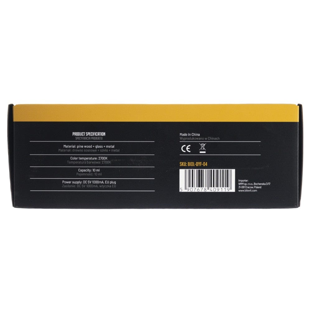 Bilovit :n pallomainen eteeristen öljyjen sumutin on tyylikäs lisä mihin tahansa sisustukseen, jossa yhdistyvät toiminnallisuus ja moderni muotoilu. Valmistettu mäntypuusta, lasista ja metallista, se kiinnittää huomion hienovaraisella ulkonäöllään, ja säädettävä polttimo luo lämpimän, tunnelmallisen ilmapiirin.