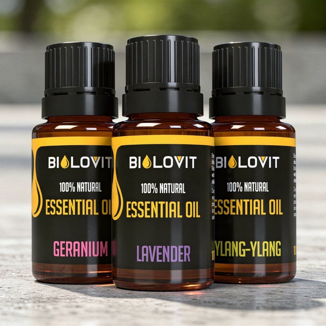 Le géranium apaise et tonifie la peau, l'ylang-ylang a un effet relaxant et aphrodisiaque, et la lavande apaise et régénère. Idéales pour les massages, les bains, les diffuseurs et les soins naturels du corps et des cheveux.
