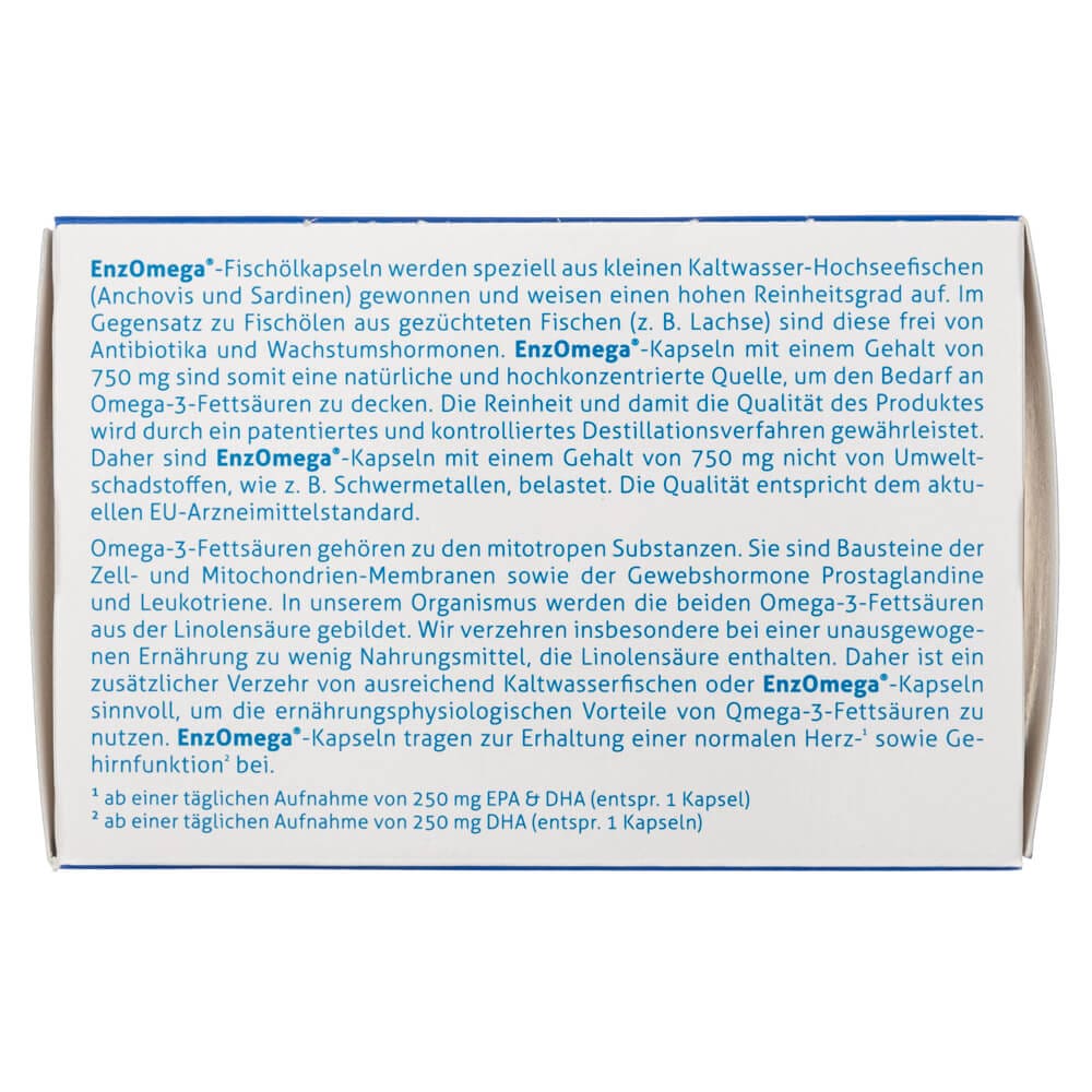 EnzOmega ® MSE du Dr. Enzmann est un complément alimentaire en gélules contenant des acides gras oméga 3 dans des proportions élevées de DHA 220 mg pour EPA 530 mg. Le rapport idéal 2:1 entre les acides gras oméga-3 EPA et DHA assure l'équilibre biochimique et la plus grande efficacité du produit, soutenant ainsi efficacement la fonction cardiaque, la fonction cérébrale et la vision.