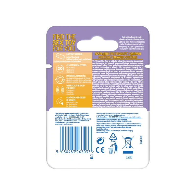 Le Durex Vibe Ring est un coussin vibrant conçu pour apporter un plaisir supplémentaire aux deux partenaires. Il est facile à utiliser, simple à allumer et à éteindre et parfait pour l'expérimentation. Pour un plaisir vibratoire maximal.