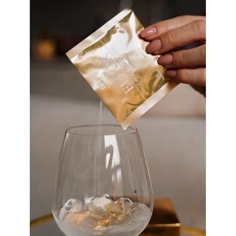 Fitness Authority Beauty Elixir Caviar Collagenest un complément alimentaire en poudre. Le Peptan® F, collagène de poisson d'eau de mer breveté provenant de France, a été utilisé dans la production du Beauty Elixir Caviar Collagen. Le collagène Peptxc1669 F hydrolysé est un peptide de collagène de poisson dont la biodisponibilité par l'organisme est supérieure à90%. Le produit contient pas moins de 6500 mg de Peptan® F,extrait de caviar, acide hyaluronique, ainsi que d'autres ingrédients qui ont un effet positif sur le corps, y compris la vitamine C, qui aide à la production correcte de collagène, le zinc et le sélénium. Tous ces éléments forment une combinaison unique d'ingrédients actifs sous une forme soluble pratique.