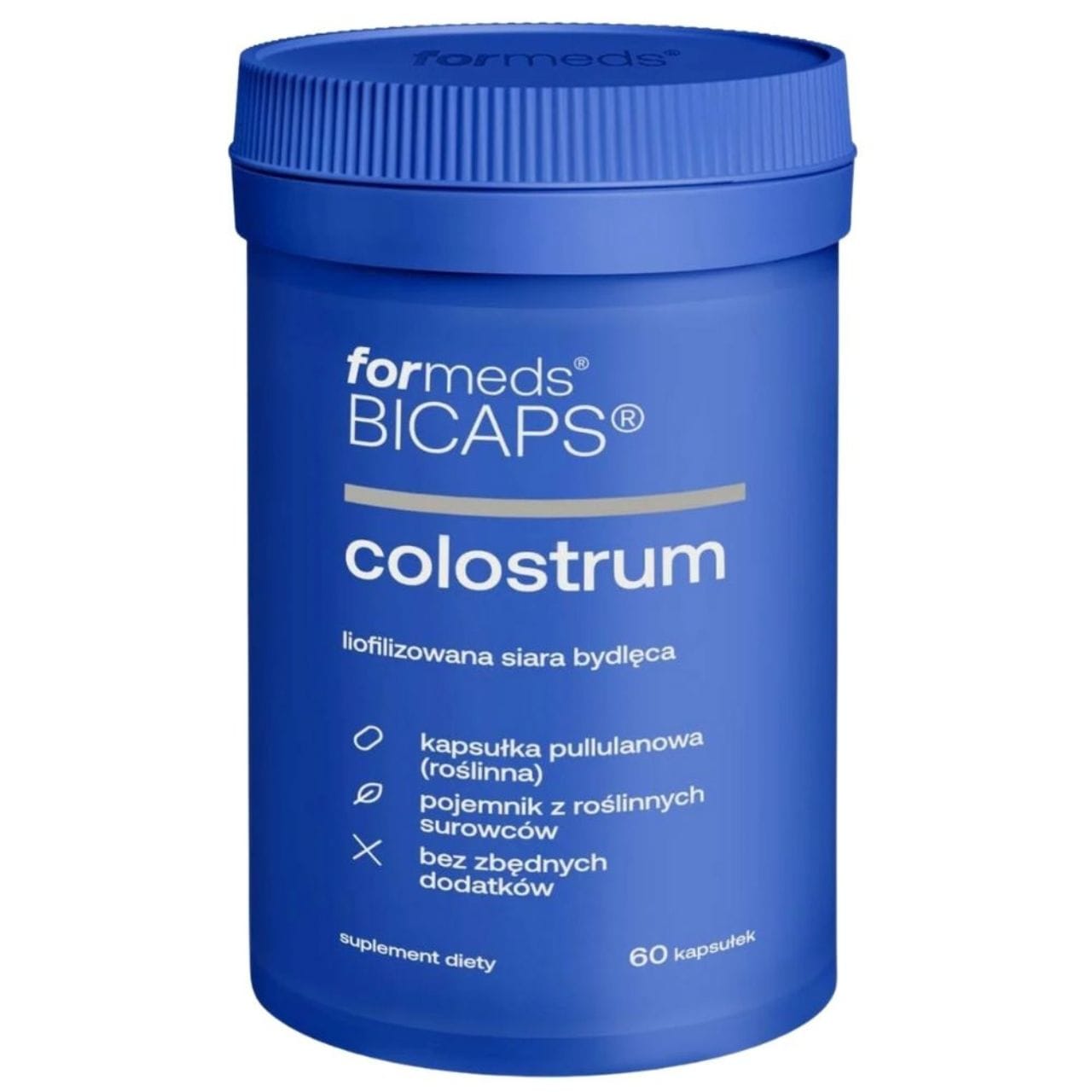 Formeds Bicaps Colostrum est un complément alimentaire sous forme de gélules. Il s'agit d'une source de Colostrum, bovin lyophilisé obtenu dans les 24 heures suivant la naissance. Cela garantit qu'il conserve toute sa stabilité et son activité biologique. Colostrum standardisé pour les immunoglobulines (30%), lactoferrine (2,5%) et polypeptides riches en proline (2%).