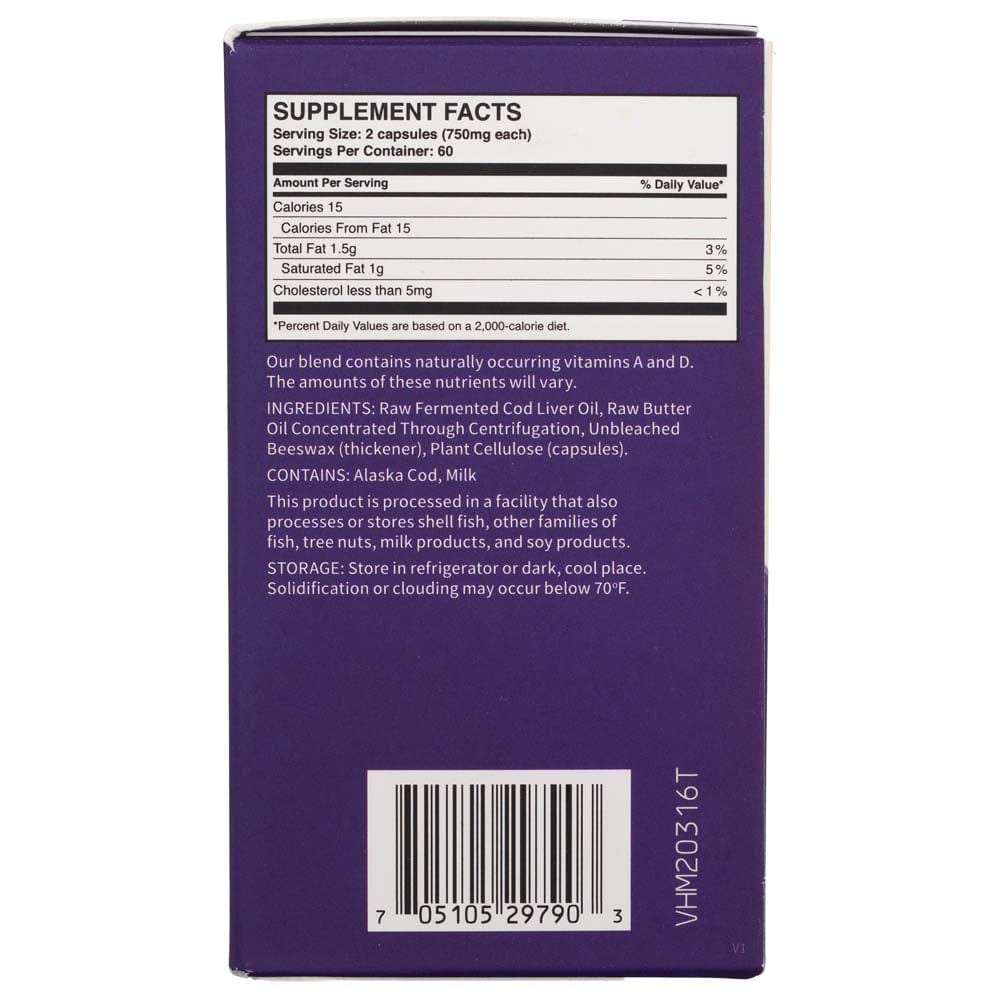 Le Dr Weston A. Price a découvert que la combinaison d'huile de foie de morue et d'huile de beurre était plus bénéfique que l'un ou l'autre seul. Dans ce produit mélangé, nous avons rendu cette combinaison riche en nutriments disponible sous forme de capsules faciles à prendre. Il s'agit d'un mélange de notre huile de foie de morue fermentée et d'huile de beurre concentrée.