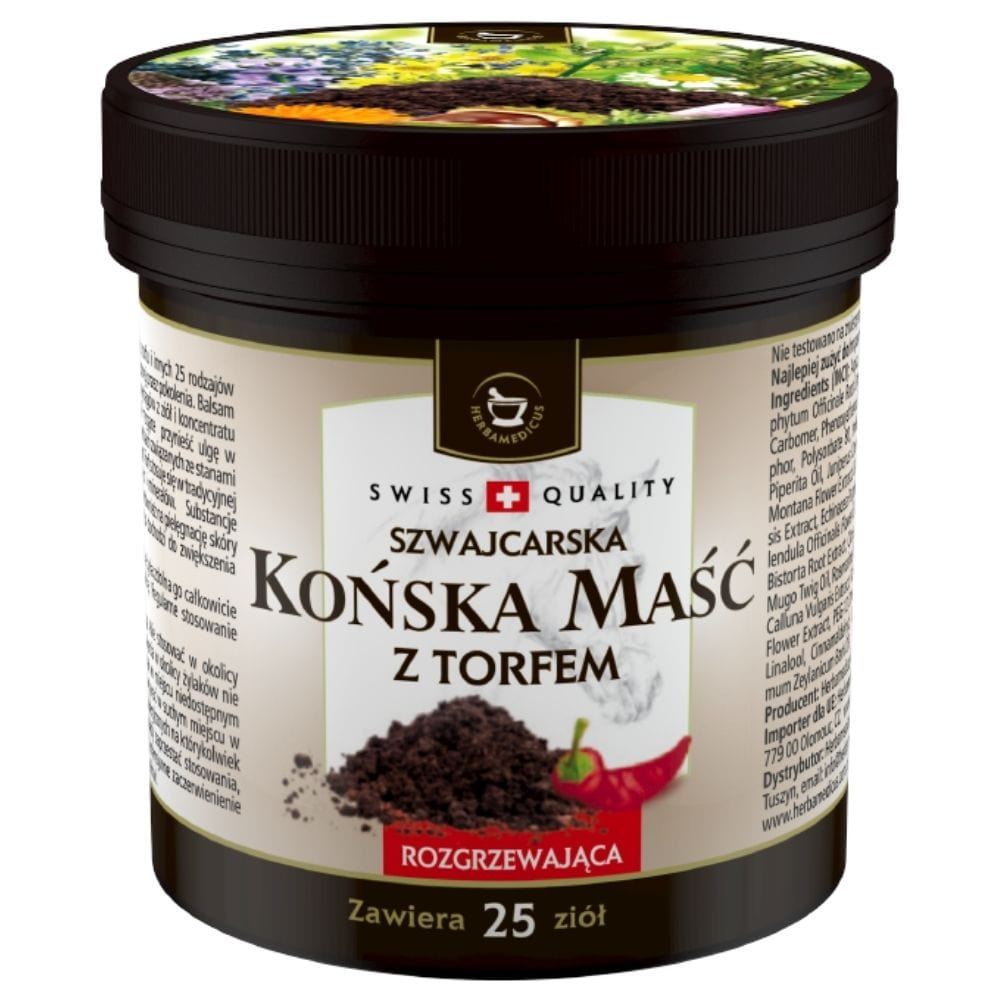Herbamedicus Horse Ointment with Peat Warming est un baume à base de plantes unique créé à partir de tourbe de haute qualité et de 25 extraits de plantes . La formule basée sur une recette traditionnelle fournit un effet chauffant intensif et soutient efficacement la régénération.