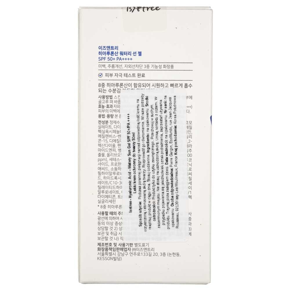 Isntree Gel solaire aqueux à l'acide hyaluronique SPF 50+ PA++++ UVA/UVB - 50 ml