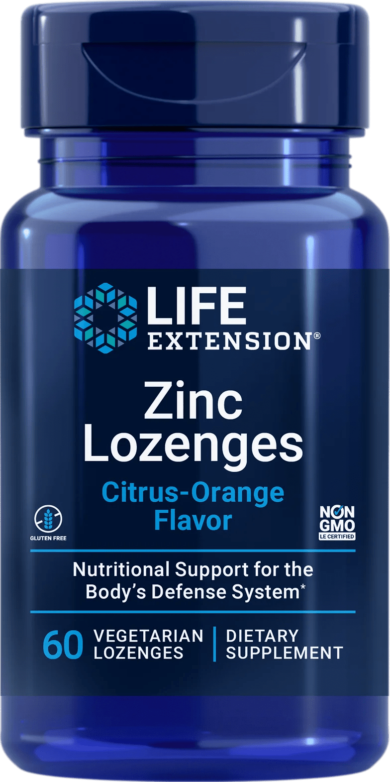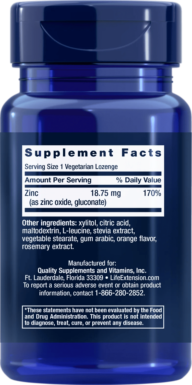 Zinc Lozenges de Life Extension est un complément alimentaire sous forme de pastilles avec un arôme citron-orange , contenant du zinc sous forme d'oxyde de zinc et de gluconate de zinc.