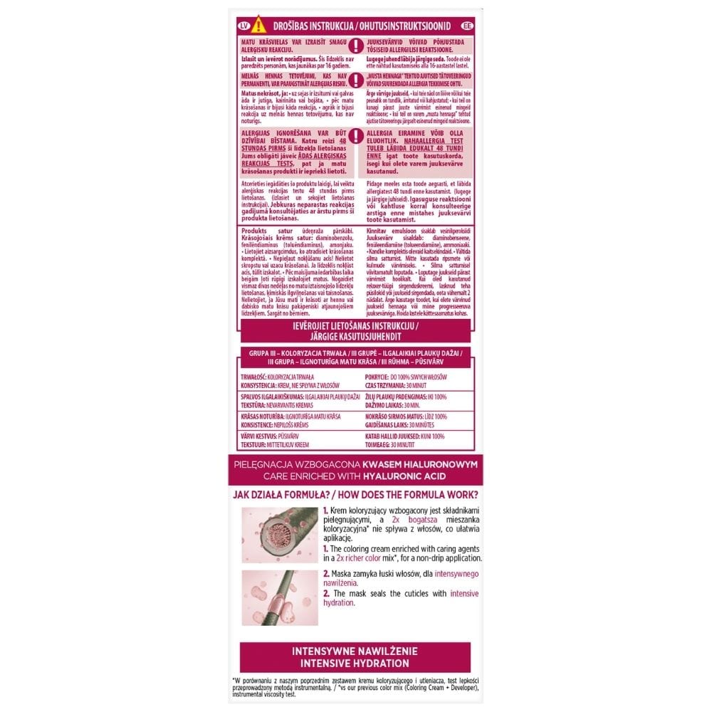 - Crème colorante protectrice : Enrichi d'ingrédients revitalisants, assure une coloration longue durée. Le mélange colorant 2x plus riche* ne coule pas sur les cheveux, ce qui facilite l'application.