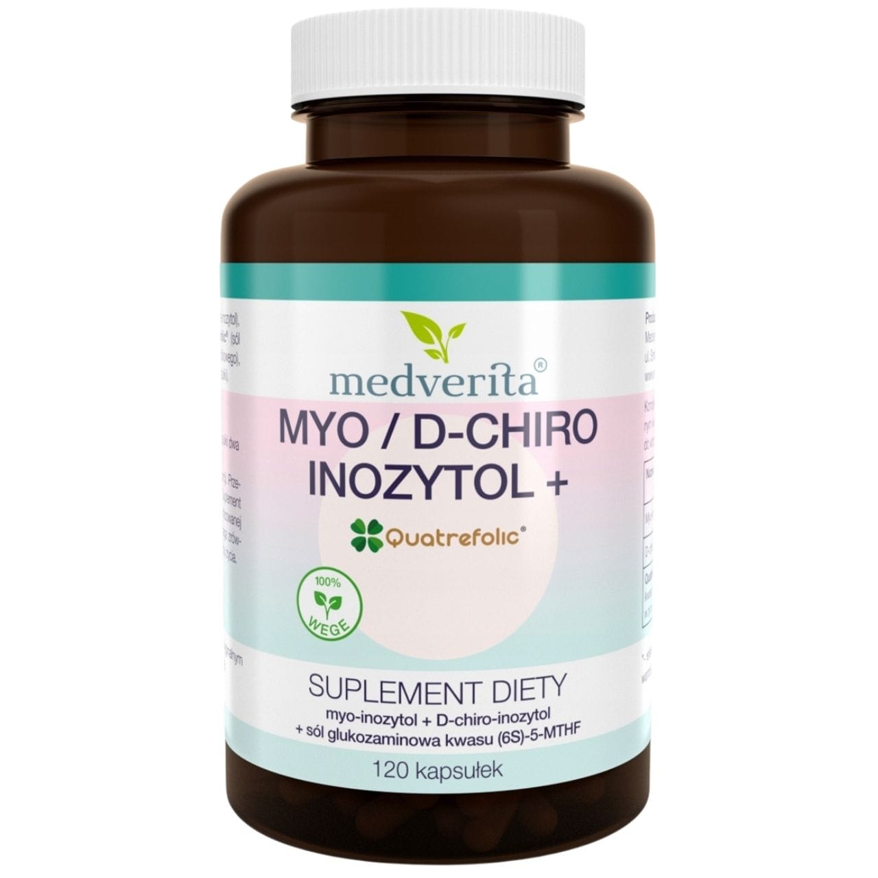 Medverita Myo/D-chiro inositol + Quatrefolic ® est un complément alimentaire sous forme de gélules. Un complexe de stéréoisomères Myo et D-chiro-inositol avec de l'acide folique actif Quatrefolic ® . L'inositol est un composé organique similaire à une vitamine, parfois appelé « vitamine B8 ». Sa forme biologiquement active est le myo-inositol, présent dans les organismes végétaux et animaux. Un complément sans additifs inutiles ni agents de remplissage, adapté aux végétaliens et végétariens.