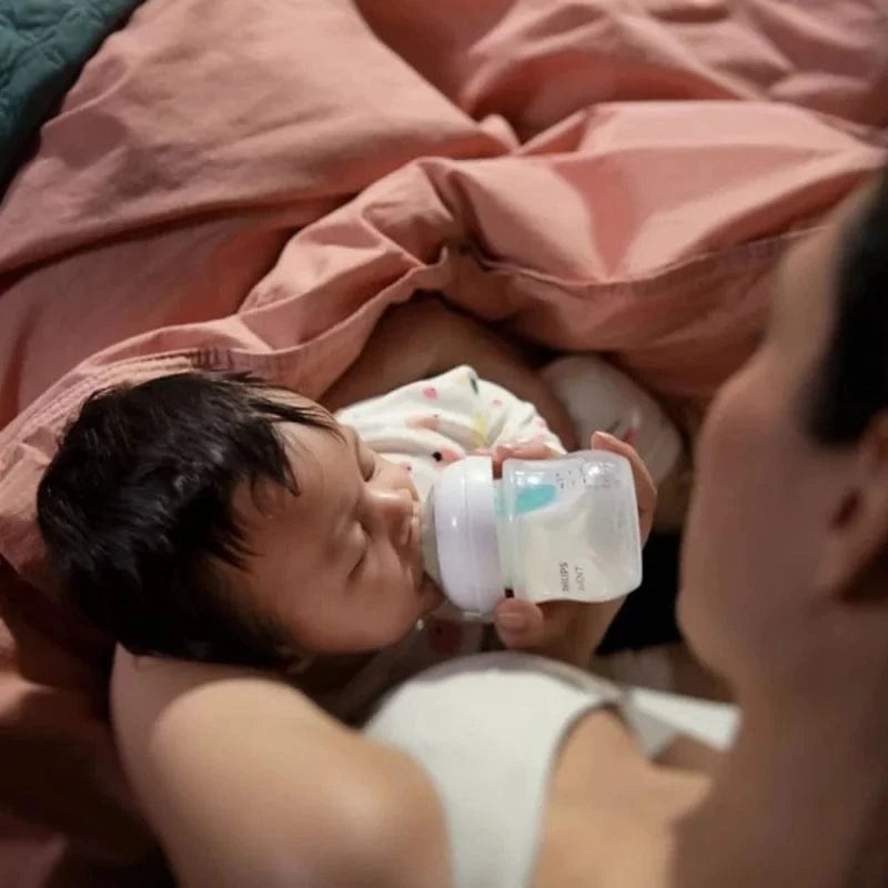 - Pendant l'allaitement, maintenez le biberon à la verticale afin que l'air ne s'échappe pas et que la tétine reste remplie de lait.