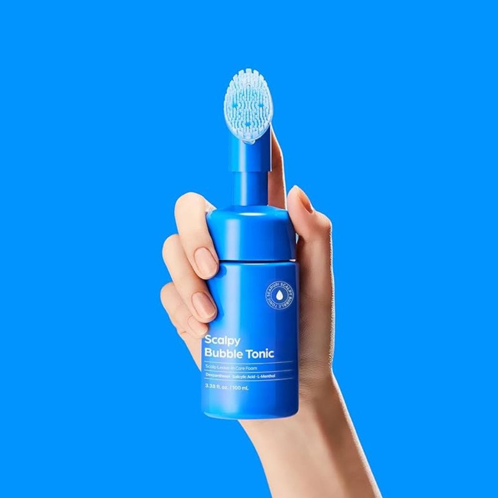 Seapuri Scalpy Bubble Anti-Dandruff Soothing Tonic est un tonique innovant à base d'acide salicylique et de piroctone olamine, qui réduit la chute des cheveux de 75,1% après 4 semaines. Une brosse unique dotée de 200 micro-poils élimine les pellicules, nettoie les follicules pileux et apporte 22 acides aminés directement au cuir chevelu.