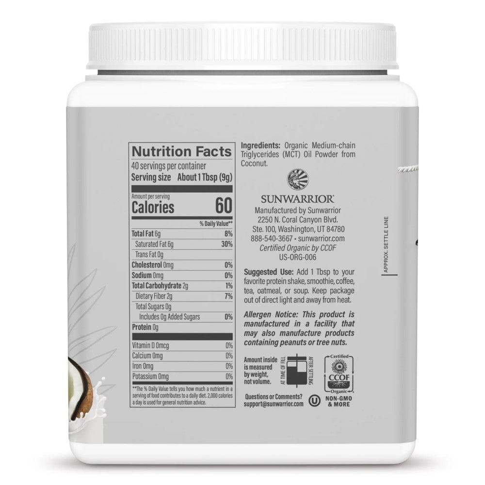 Sunwarrior Active MCT Oil est une formule en poudre contenant de l'huile de coco, biologique en poudre. Vegan, sans additifs ni agents de remplissage inutiles.