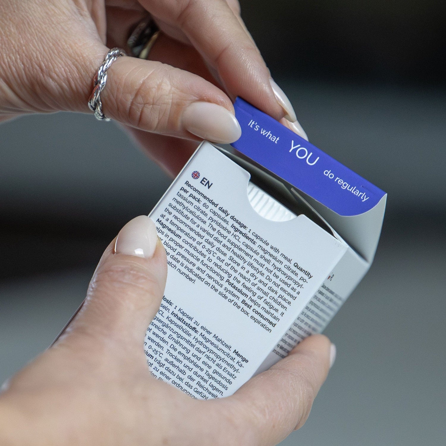 Le produit fournit 1 00 mg de magnésium,150 mg de potassium, et 6 mg de vitamine B6. Composition pure, sans additifs inutiles. Convient aux végétaliens.