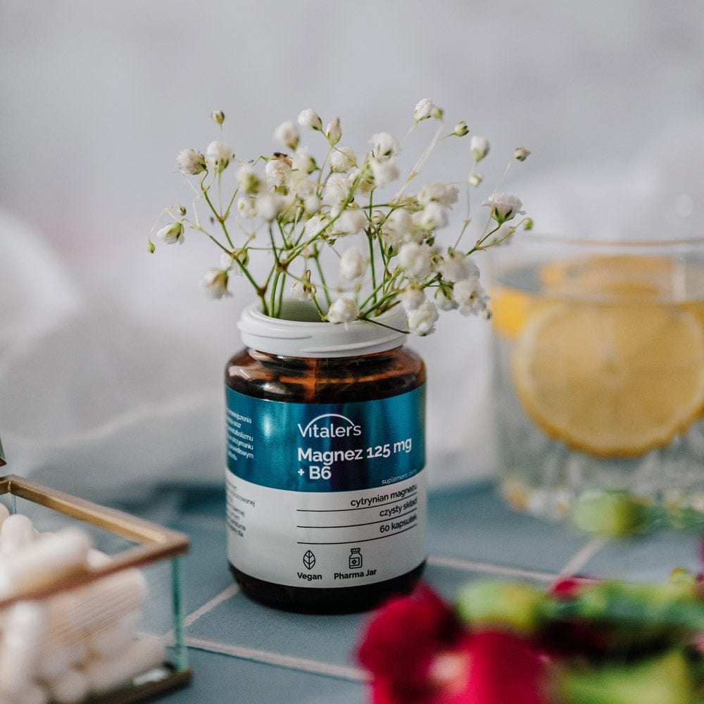Vitaler's Magnésium 125 mg + B6 est un complément alimentaire qui répond aux directives d'un régime végétalien et végétarien. Grâce à la vitamine B6 contenue dans le produit, l'absorption du magnésium par le tractus gastro-intestinal est augmentée de 20 à 40%.