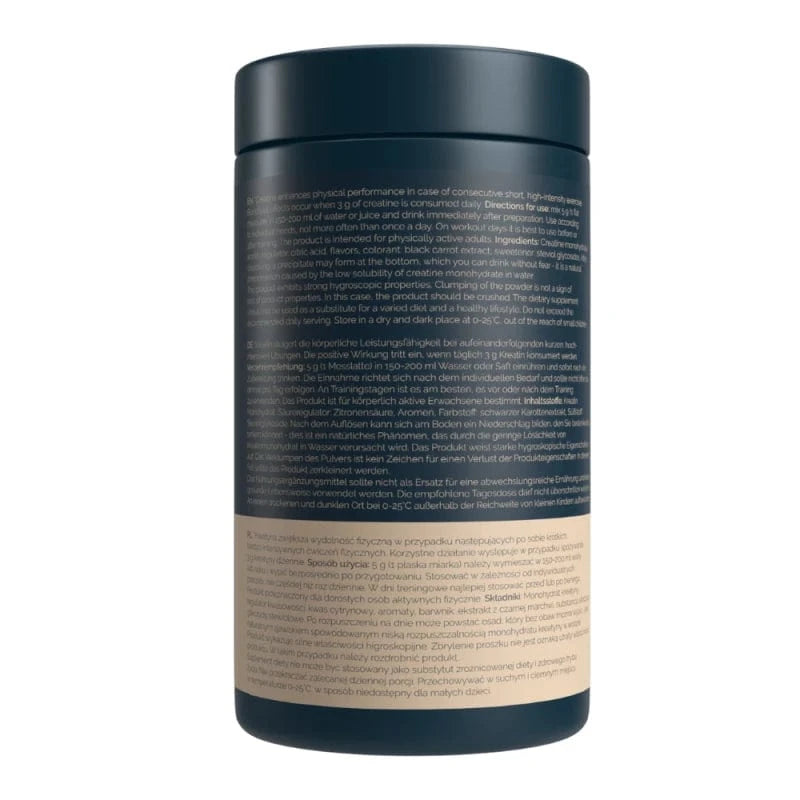 La créatine monohydrate micronisée est l'une des formes de créatine les plus pures et les plus efficaces. Une utilisation régulière peut aider à obtenir de meilleures performances sportives, à améliorer la récupération et à augmenter la force musculaire. Le produit ne contient pas d'additifs inutiles tels que sucre, gluten, lactose, conservateurs ou colorants artificiels , ce qui en fait un choix idéal pour les personnes soucieuses d'une alimentation saine, y compris les végétaliens.
