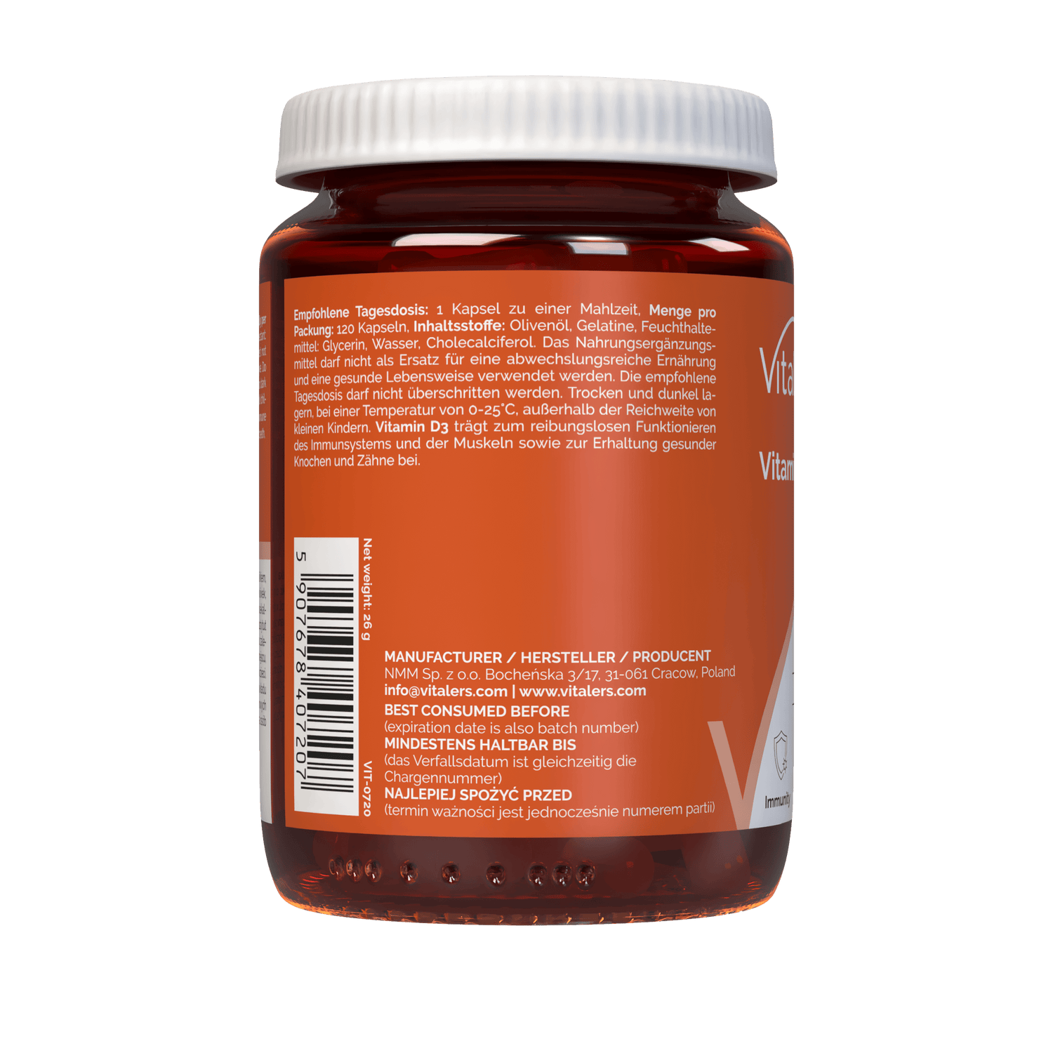 Vitaler's Vitamin D3 4000 IU est un complément alimentaire en gouttes contenant de la vitamine D3 dérivée de la lanoline. La vitamine D contribue au bon fonctionnement du système immunitaire, muscles, et au maintien de la santé des os et des dents.