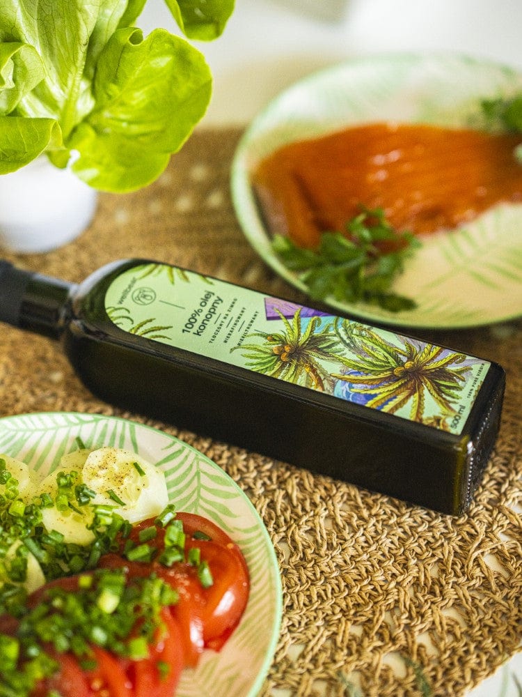 L'huile de chanvre de haute qualité, non purifiée, pressée à froid doit être consommée froide et conservée au réfrigérateur . L'huile ne doit pas être soumise à un traitement thermique. Le produit doit être consommé directement à la cuillère ou en accompagnement de plats froids. En raison de son goût prononcé, l'huile de chanvre, est particulièrement appréciée dans les salades avec des légumes frais, croquants. Elle peut également être versée sur du pain ou servir de base à des garnitures telles que le pesto. Si vous8 souhaitez associer l'huile de chanvre à des plats cuits, ne l'ajoutez qu'une fois qu'ils ont refroidi. L'huile peut également être appliquée directement sur la peau et les cheveux ou utilisée pour enrichir les crèmes, les masques et les après-shampooings.